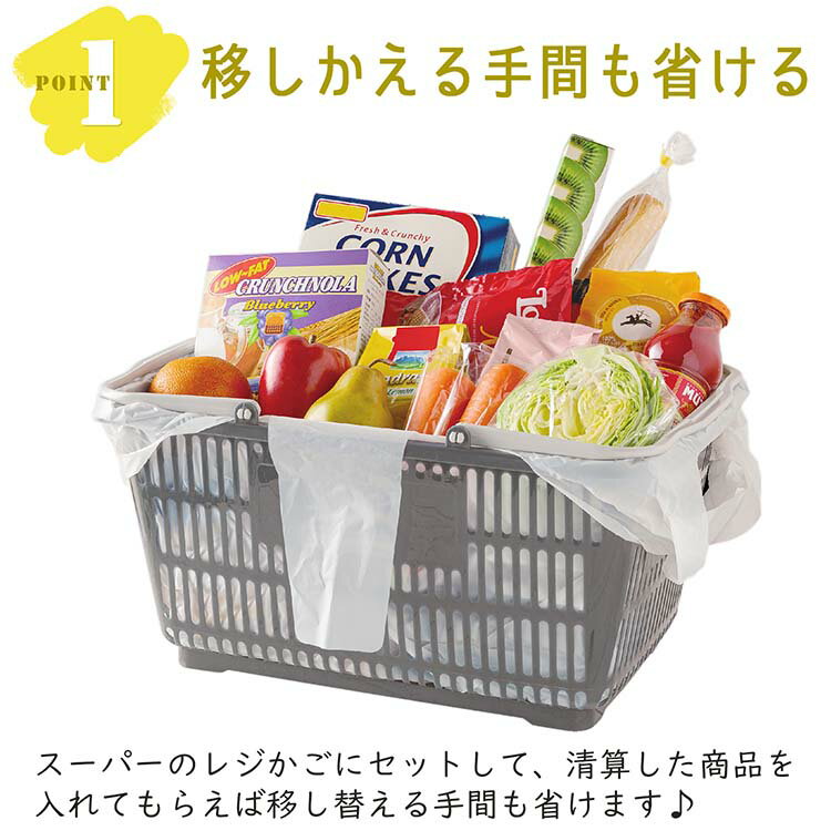 本体サイズ約70×50×15cm(1枚あたり) 本体重量約135g 素材・材質ポリエチレン 原産国日本 商品説明レジカゴにすっぽり装着!取っ手付きポリ袋レジカゴにセットして、お買い物バッグとして手軽にお使い頂けます。