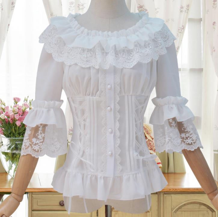 Lolita系 ロリータ ブラウス シャツ 中袖 トップス ホワイト ブラック 萌え レディース ゴスロリ ロリータファッション 変装 トップス ホワイト ブラック ブルー ワインレッド