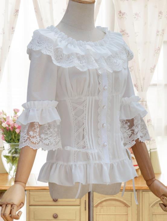Lolita系 ロリータ ブラウス シャツ 長袖 トップス ホワイト ブラック 萌え レディース ゴスロリ ロリータファッション 変装 トップス ホワイト ブラック ブルー ワインレッド