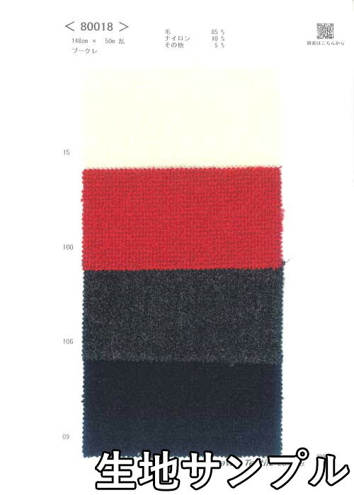 ウール【80018】【無地】【送料無料 ヤマトネコポス便配送 代引不可】【ウール生地】カラー全4色【生地サンプル】【リングツイード】80018 ☆ジャケットやスカート、カバンや帽子などの小物にも