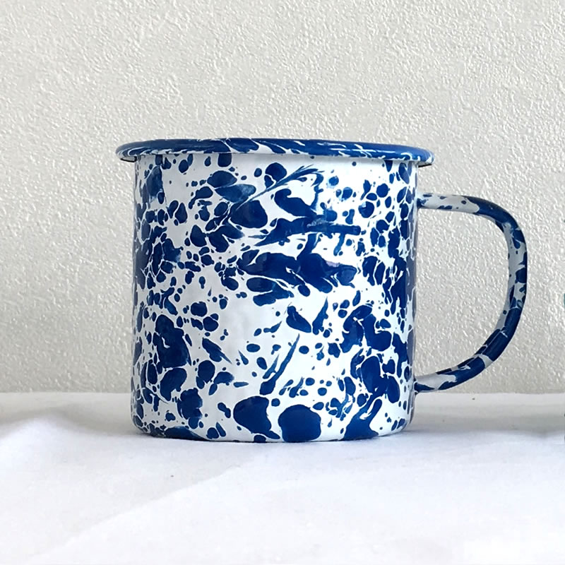 CROW CANYON HOMEクロウキャニオンホーム 琺瑯マグ354ml ブルー スプラッターペイントが美しい琺瑯食器 クロウキャニオンホームの特徴である、スプラッターパターンと呼ばれる、液体がとび跳ねたようなマーブル柄は エナメルウェアならではの色彩であり、琺瑯(ホーロー)という性質を最大限に引き出したデザインが魅力です。