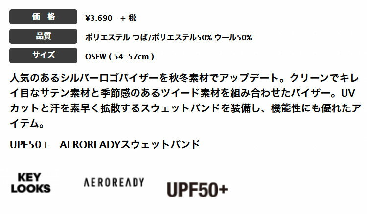 【FG】2021年モデル アディダス ゴルフ EKW67 メタルロゴ バイザー [UPF50+ AEROREADYスウェットバンド] (レディース)