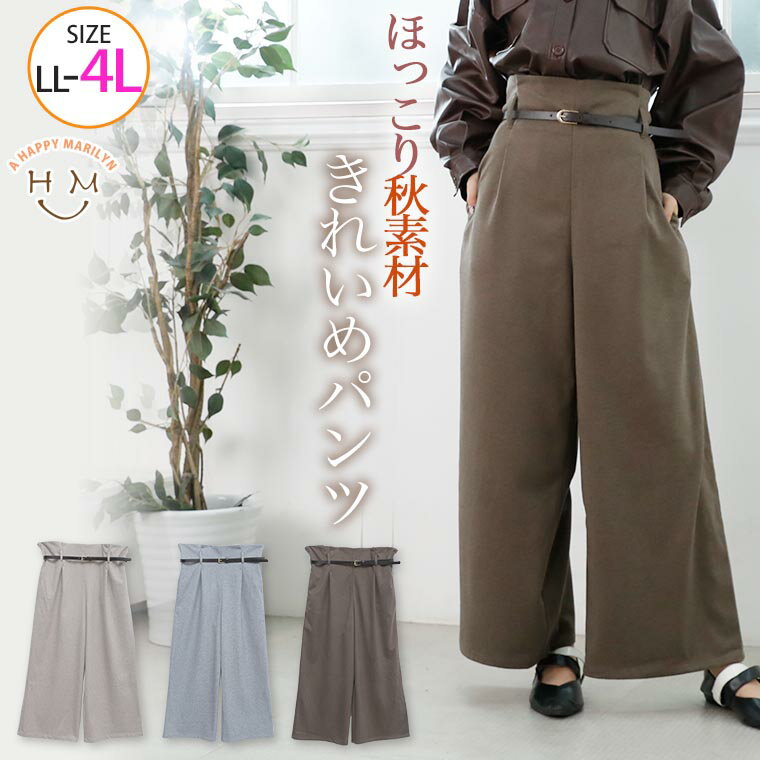 【限定!全品P5倍8/31 13:59まで】 大きいサイズ レディース パンツ | ベルト付 ツイル 起毛 パンツ _ パンツ ボトムス LL 3L 4L 秋 秋物 秋服 冬 冬物 冬服 ぽっちゃり ゆったり お尻 腰周り かわいい おしゃれ カジュアル ナチュラル きれいめ 上品 [1230618] OMMBT
