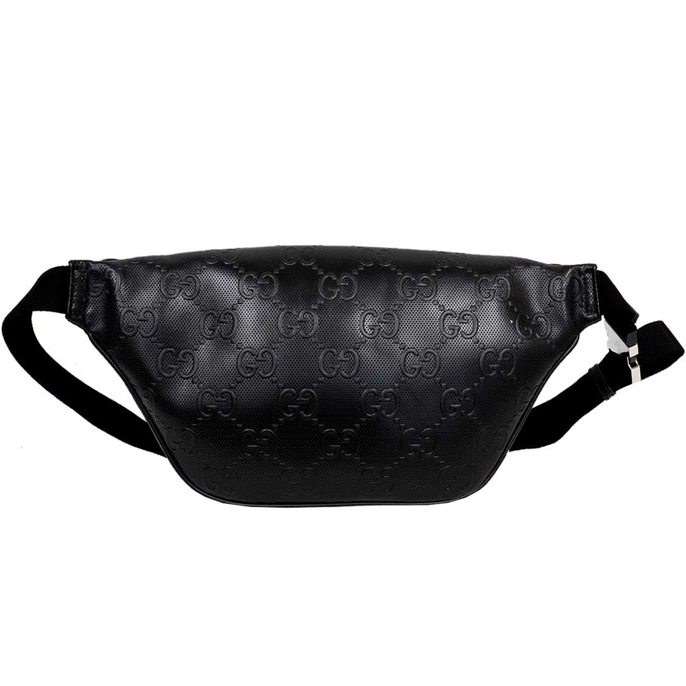 ブラックのレザーにGGパターンのエンボス加工を施したかっこいいウエストバッグです!