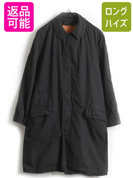 【8/30 24h限定 5倍!】 希少 黒 60s ビンテージ ■ ステンカラー ロング コート ( メンズ 男性 S M 程) 古着 ロングコート ロング丈 無地 ブラック サテンライナー| 中古 ステンカラーコート ロング 60年代 アウター オールウェザー バルマカーン バルマカーンコート スプリ